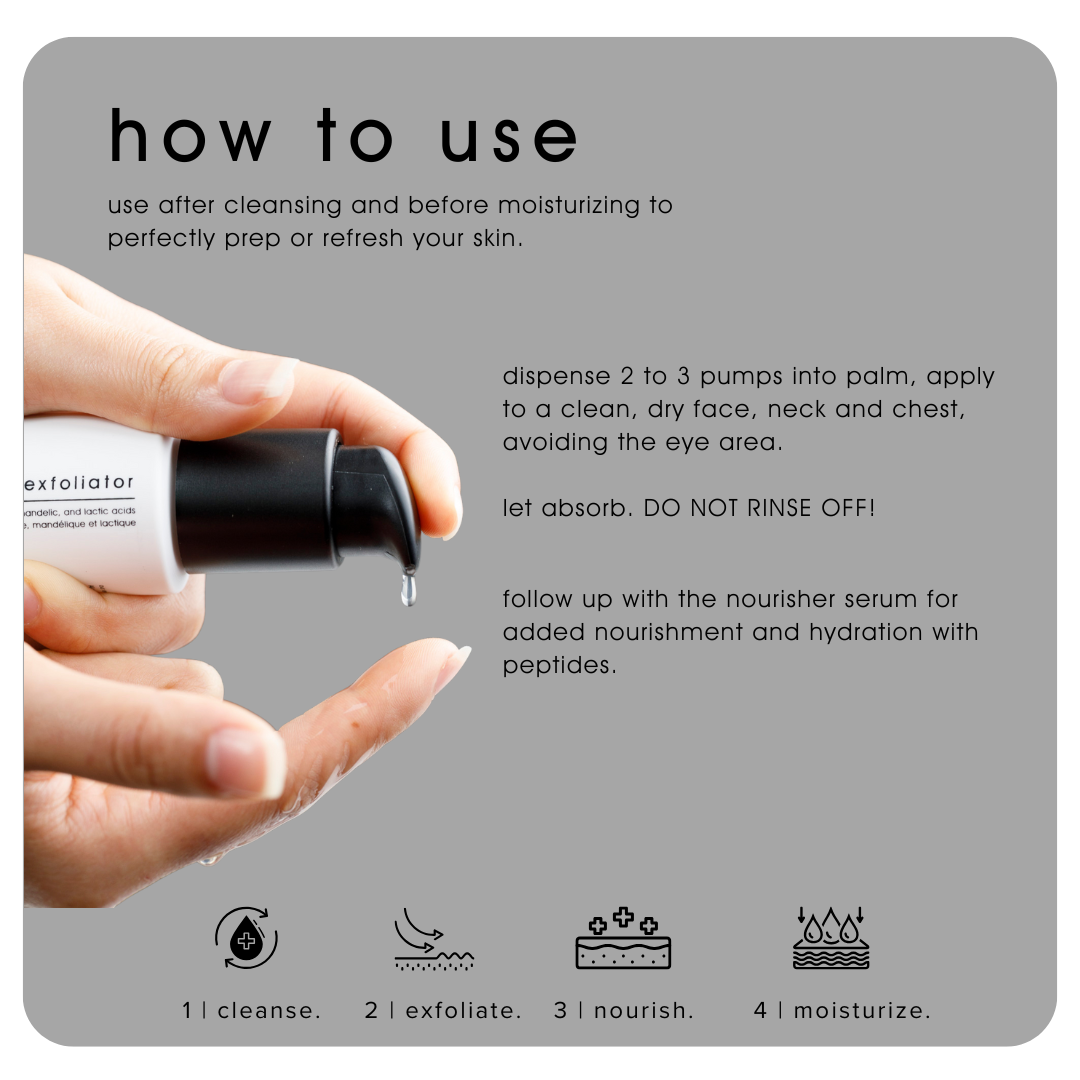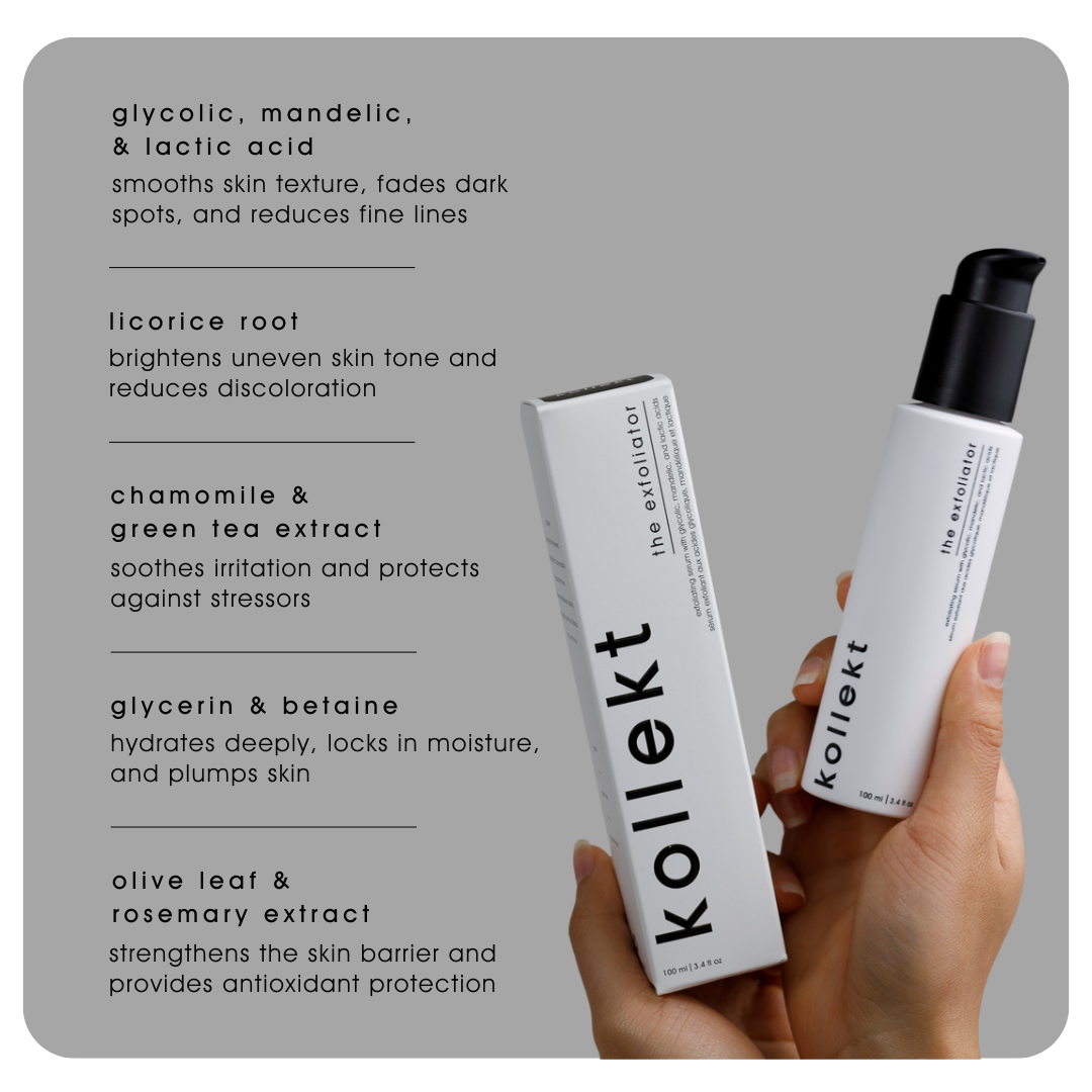 formulated with a blend of glycolic, mandelic, and lactic acids, the exfoliator effectively removes buildup and unclogs pores, leaving skin smoother and refreshed.