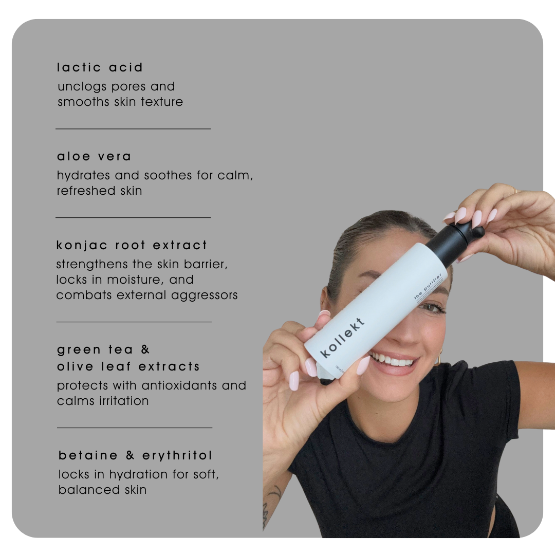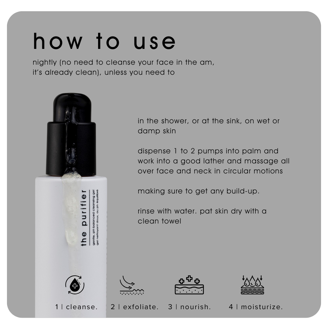 this exfoliating cleansing gel removes dirt, oil, and buildup, leaving skin refreshed, hydrated, and balanced—never tight or stripped.